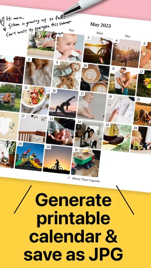 - TimeCapsule Calendar: Transform your daily photo uploads into a monthly printable calendar within your private space. Export as a PDF/JPG. Optional ‘Title’ & ‘Comment’ for each post.