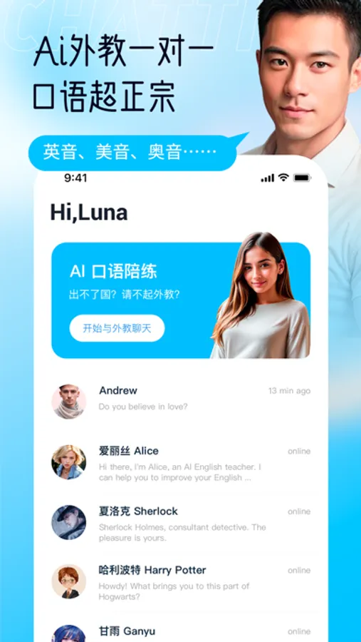 不管是0基础口语,还是初学者,又或者是以母语者为目标的学习人群,都可以选择相对应的AI外教帮助您提高口语基础,您也可以要求外教帮您指出语法错误:)