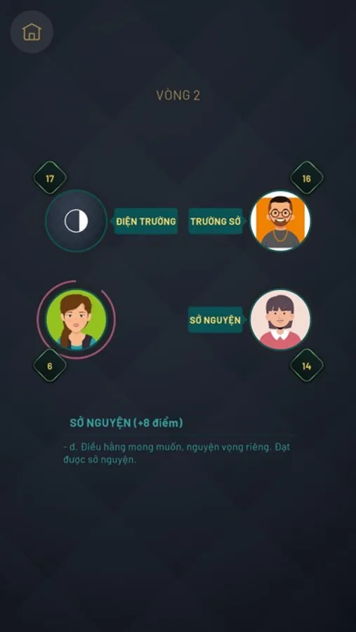 - Thử thách: Bao gồm 3 vòng chơi. Mỗi vòng chơi có giới hạn thời gian và số điểm chuẩn để vượt qua. Ghi điểm bằng số chữ cái trong từ nối thành công.