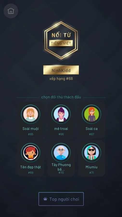 - Thách đấu: Hai người chơi lần lượt nối từ cho tới khi không trả lời được trong thời gian quy định.