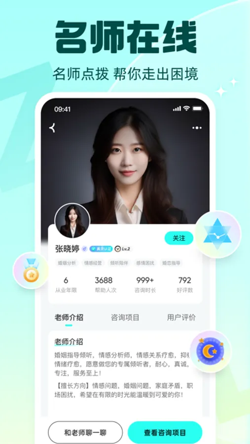 【专业认证】我们的倾听者经过严格筛选和专业认证,您可以放心地倾诉您的心事。
