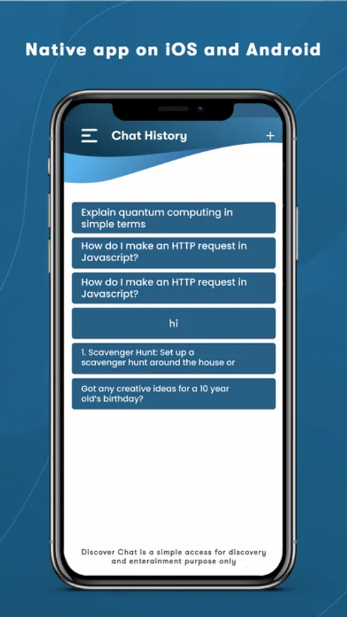 Remember, DiscoverChat is all about fun, exploration, and entertainment. Dive into engaging AI-fueled conversations, but do note that this app is not intended to provide professional advice or decisions.