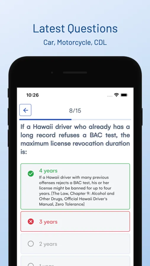 We constantly monitor the newest versions of your state's official driving handbook and traffic laws, and then update our test questions accordingly, so you can be sure that you're getting accurate and up-to-date information.