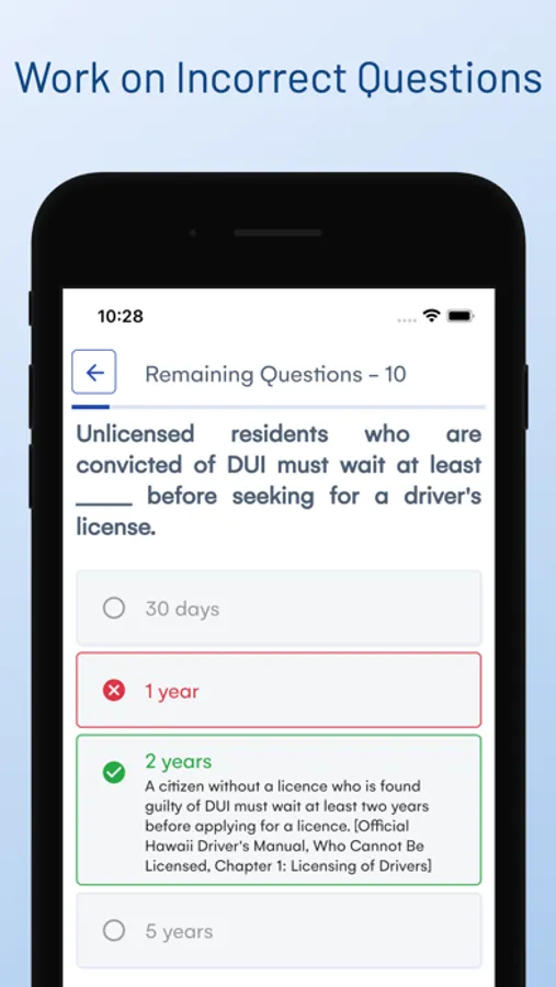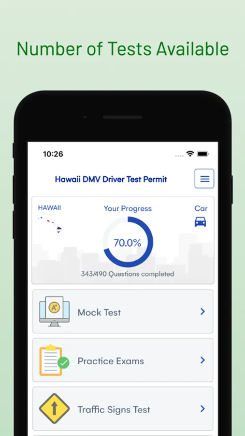 Our Hawaii HI Driver Test Permit app , is easy to use and accessible from anywhere, on any device. You can practice on your phone, tablet, at home or on the go. And with our free and unlimited tests, you can practice as many times as you need to feel comfortable and confident for the real DMV Written test .