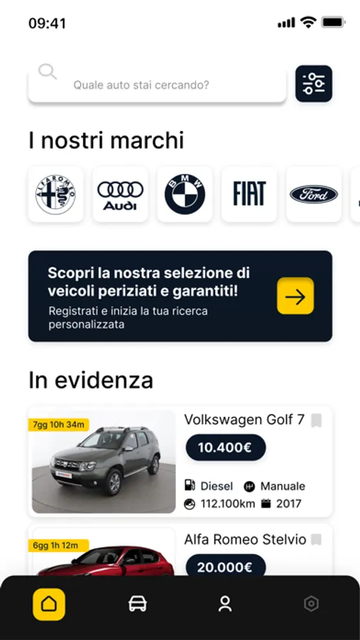 Non siamo commercianti e non trattiamo aste giudiziarie. All’interno delle nostre aste troverai auto con un massimo di 160.000 km e 8 anni di immatricolazione provenienti da fine leasing e fine noleggio, clienti fidati e partner ufficiali.