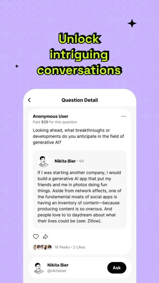 Share: share your questions on social media and invite friends to eavesdrop on them.