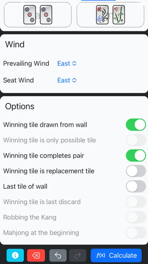 With the Mahjong Points Calculator you can quickly calculate how many points you have achieved with your Mahjong hand.
