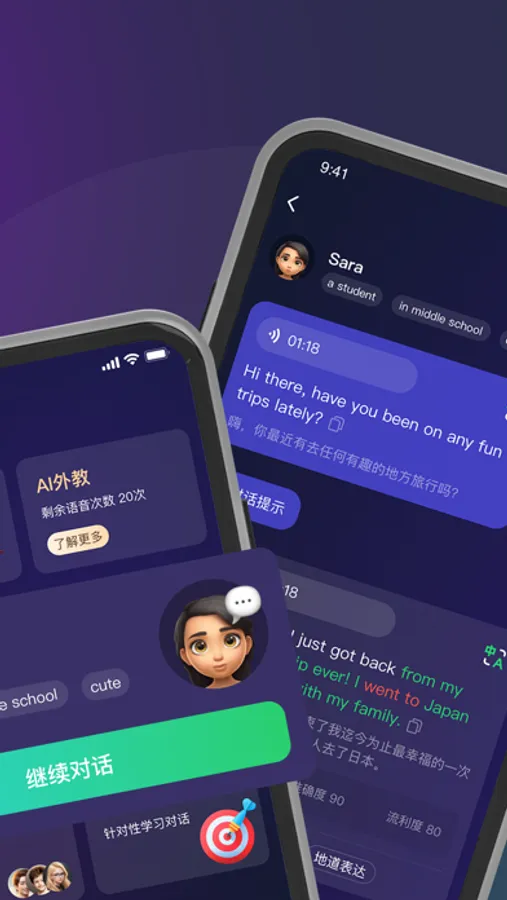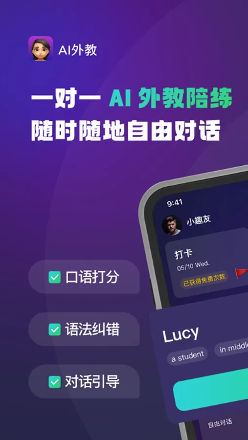 你可以随时随地自由对话,与人工智能外教进行口语练习,让你的英语口语得到有效提升,让英语学习更加轻松和流畅。