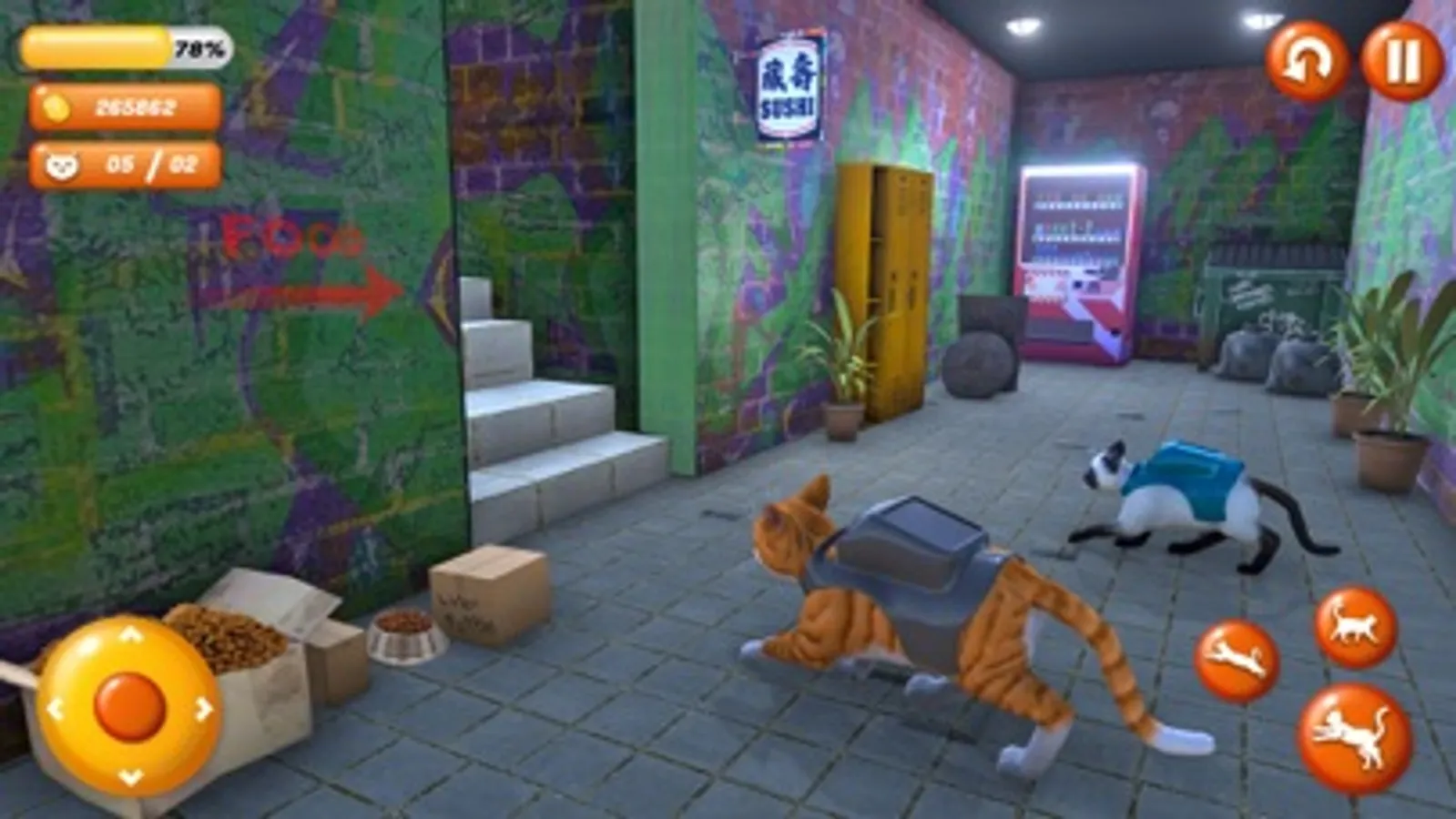 In Cat Simulator 3D - You play as a cat in game. Eat cat food and drink milk. Go out for a walk with cat mom. Play with other street cats. Go to shopping with mom as a pet. You as a cat find lost objects under the bed. A cute kitten is very sweet. Kitten cat go out in open world city and explore the vice town city.