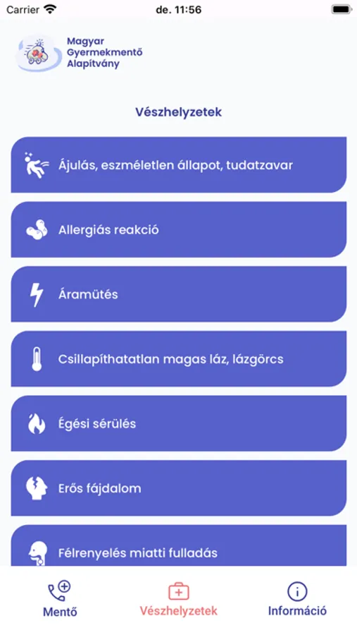 A felhasználók megtudhatják milyen esetben hívjanak mentőt, mit tegyenek a segítség érkezéséig és hogyan előzhetik meg a gyermekkorban előforduló baleseteket.