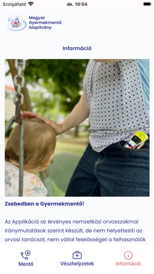 Az ingyenes applikációt a gyermekmentők készítették az érvényes szakmai ajánlások és sok éves mentési tapasztalataik szerint, hogy segítséget nyújtson szülőknek, nagyszülőknek, pedagógusoknak egészségügyi vészhelyzetek esetén. A balesetek kezdetétől számított legmeghatározóbb első 10 perc a laikus segítő kezében van, ezért fontos, hogy az ilyen esetekre felkészültek legyenek.