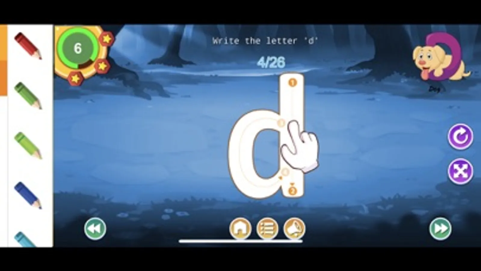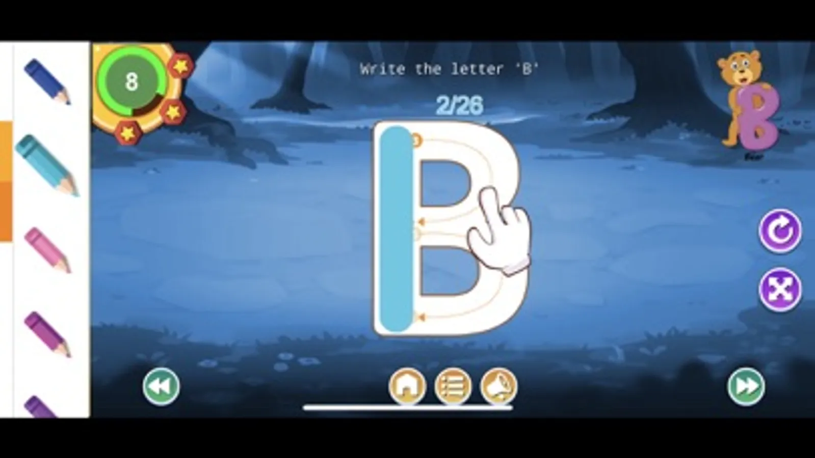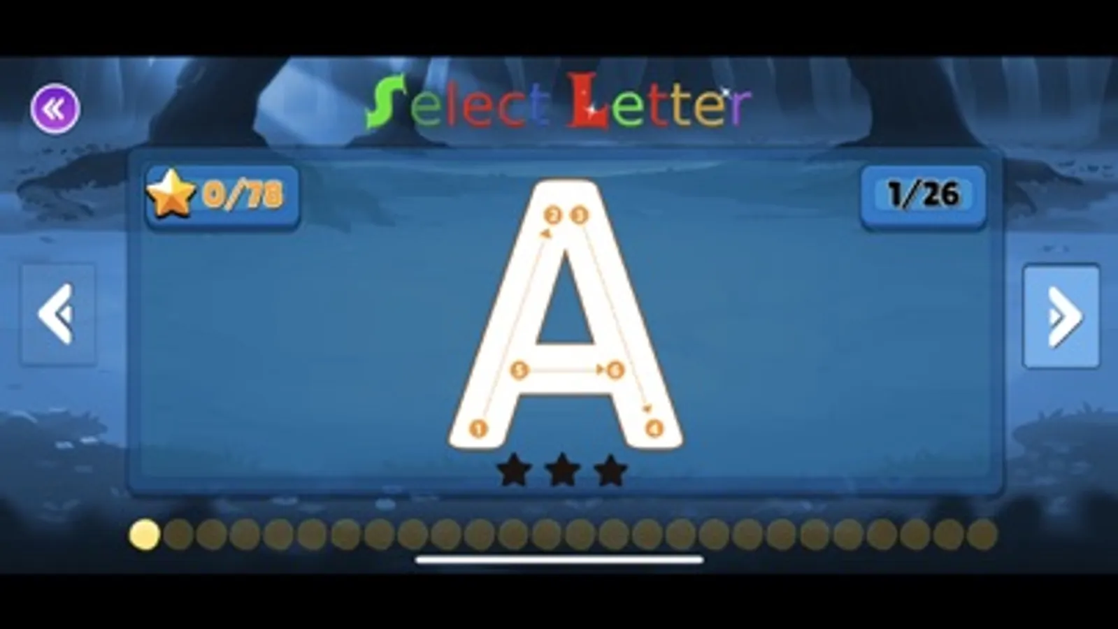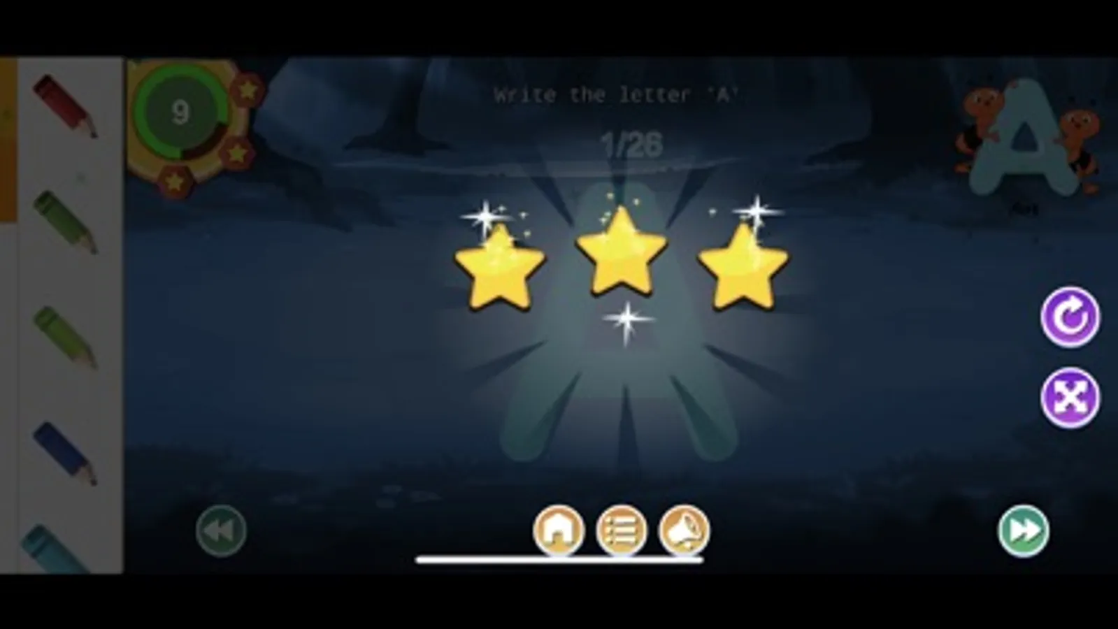 There is a star system to reward and all sections can be reset and repeated as often as you want - with everything saved for the next time the app is used.