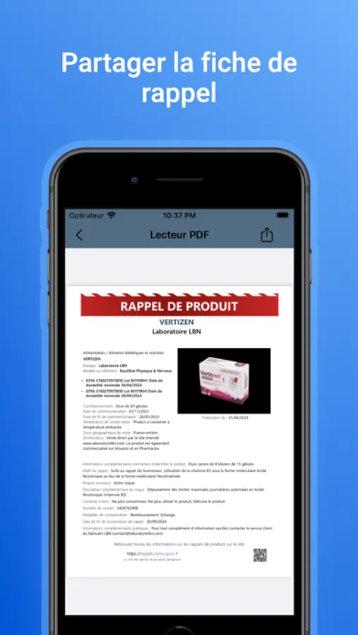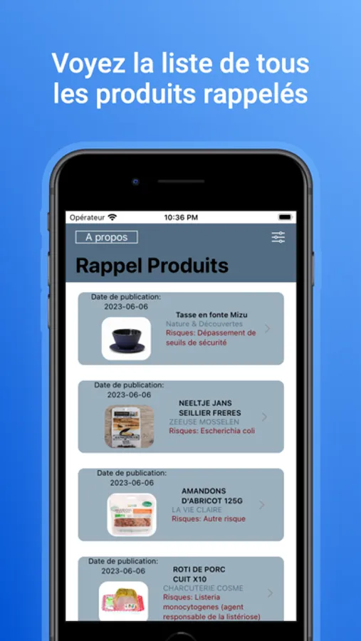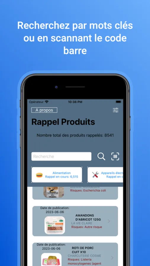 Cherchez un produit en le scannant, ou en entrant son nom et sachez s'il est en cours de rappel.