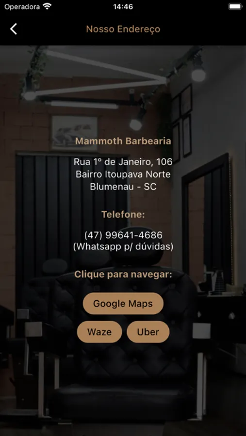 - Acessar nosso endereço e usar os atalhos de navegação para Maps, Waze ou chamar o Uber para vir até nós;