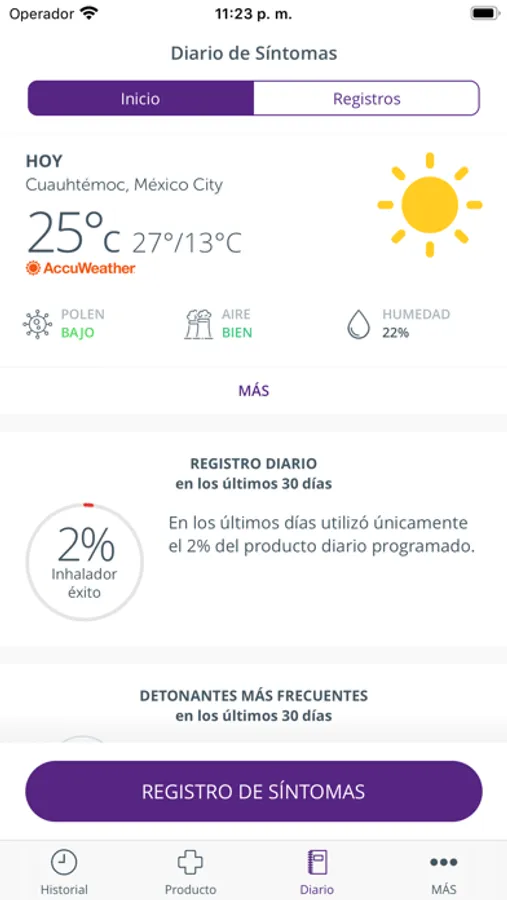 Respira Más, una aplicación que le permite supervisar el uso adecuado de su inhalador MDI, permite obtener en su celular la bitácora de uso diario, recordatorio con alarmas para aplicación de dosis, registro de síntomas y detonadores diarios, que permiten tener toda la información del usuario para poder compartirla con su médico tratante. Mantenga su historial de uso actualizado en tiempo real.