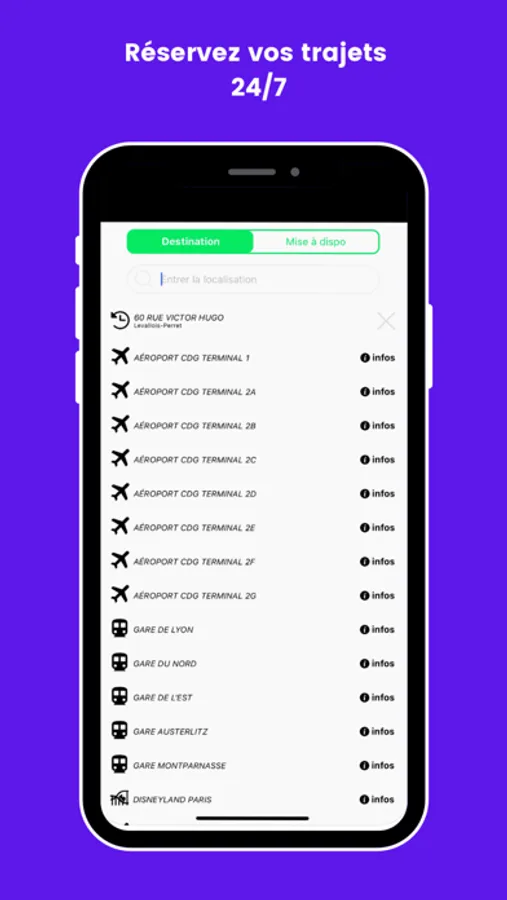 Nous vous couvrons les transferts d'aéroport, les trajets longue distance, les réservations à l'heure et bien plus encore !