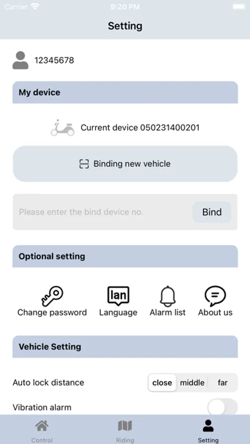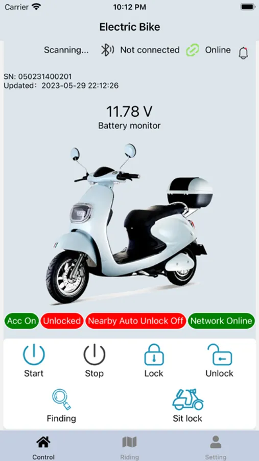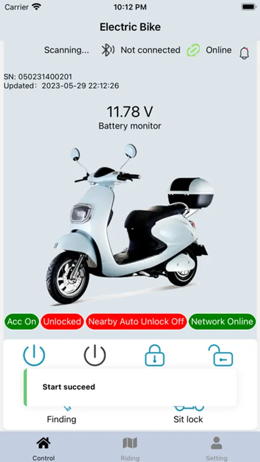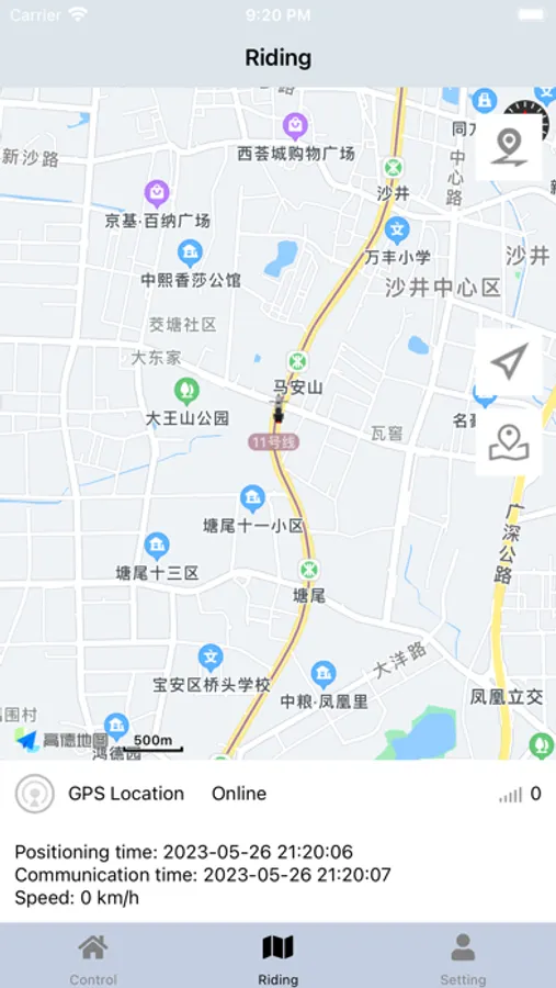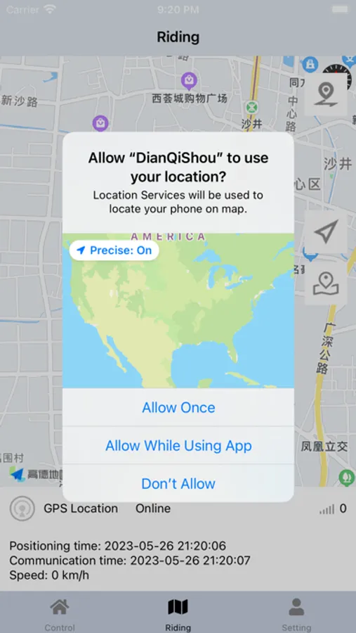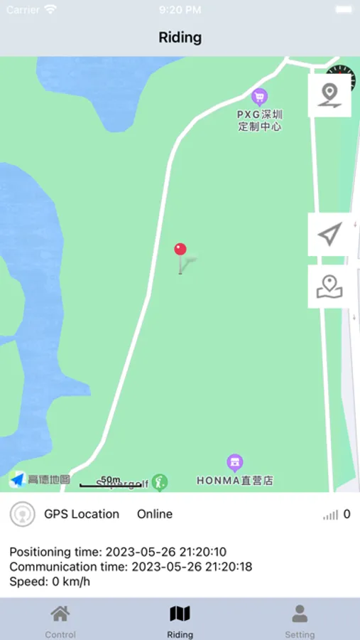 DianQiShou controller App. Controlling over 4G network or Bluetooth. Locating the vehicle using GPS.