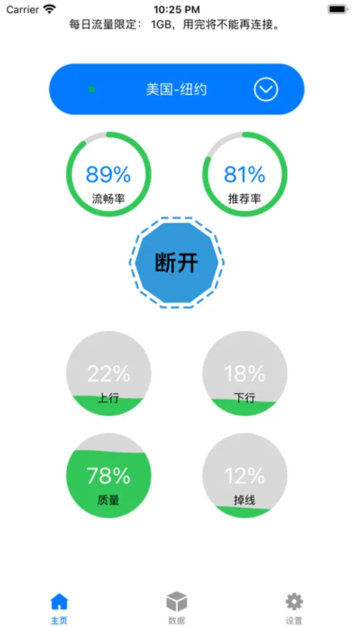 每日流量限制为1.0GB,使用完毕后将不能再连接网络.
