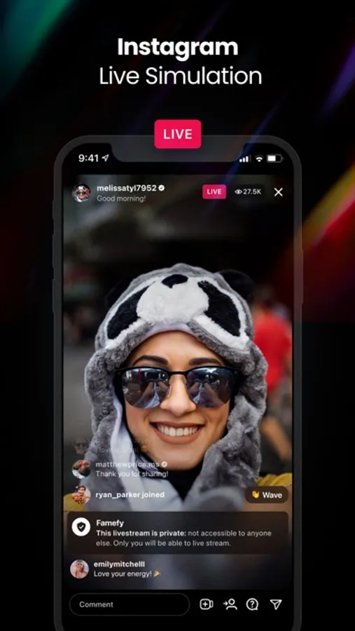 Please note: Famefy is a simulation and entertainment app. Simulated viewers are AI-powered characters, and none of them represent real individuals.