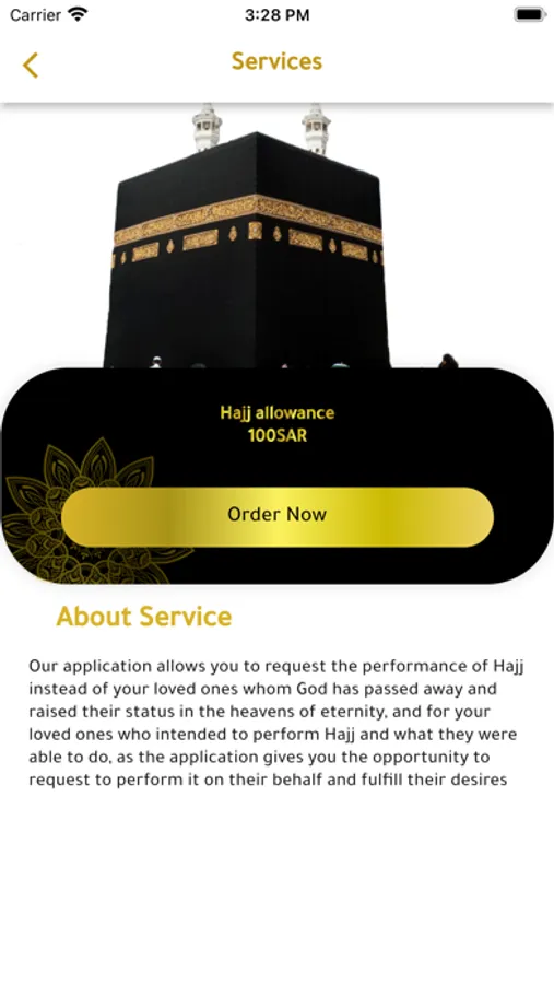 in the immortal heaven who had the intention to perform the Hajj but they could not achieve their wish; this Application gives you the opportunity to request perform it instead of them and accomplish their desire.