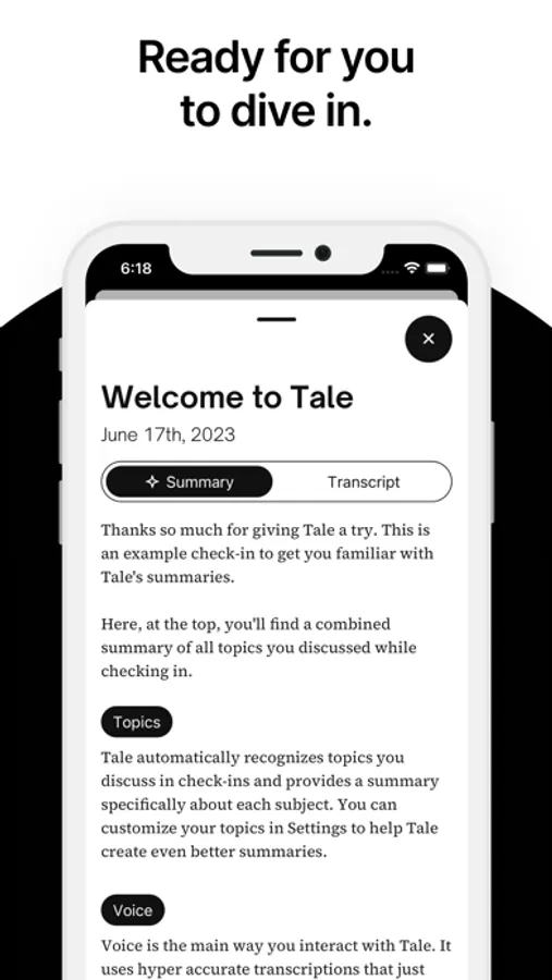 With hyper-accurate transcriptions, Tale turns a flood of words into a beautifully organized journal, ready to dive into.