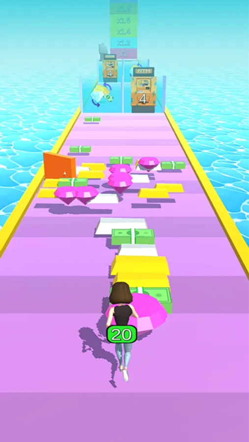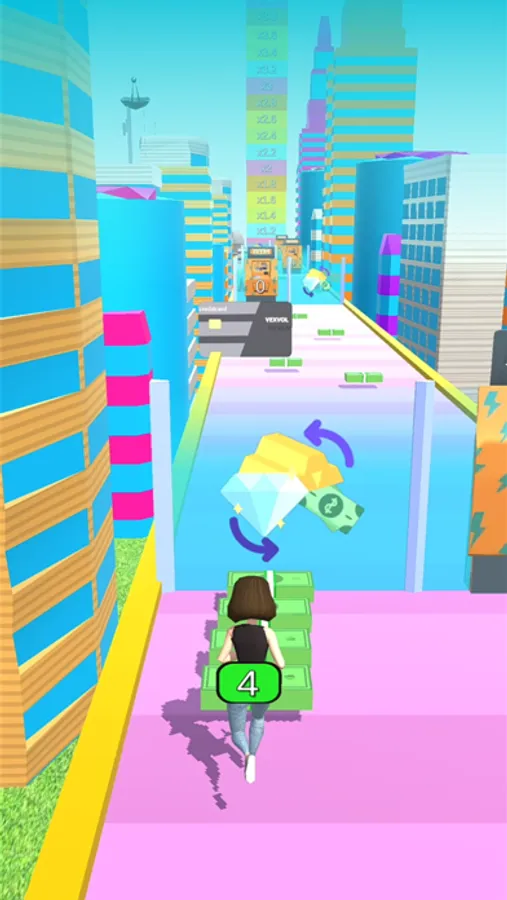 There are multiple hurdles waiting for you on the path before you reach your destination but you have money stack to collect and try your luck while running in this endless runner 3d rich girl run game. You have got to showcase your skills of being the ultimate Money winner with the most coins. Multiply your earnings using your logical skills, girl runner. It’s time to collect your coins, choose the best gates, and multiply your cash before you reach the end of the money rusher game.
