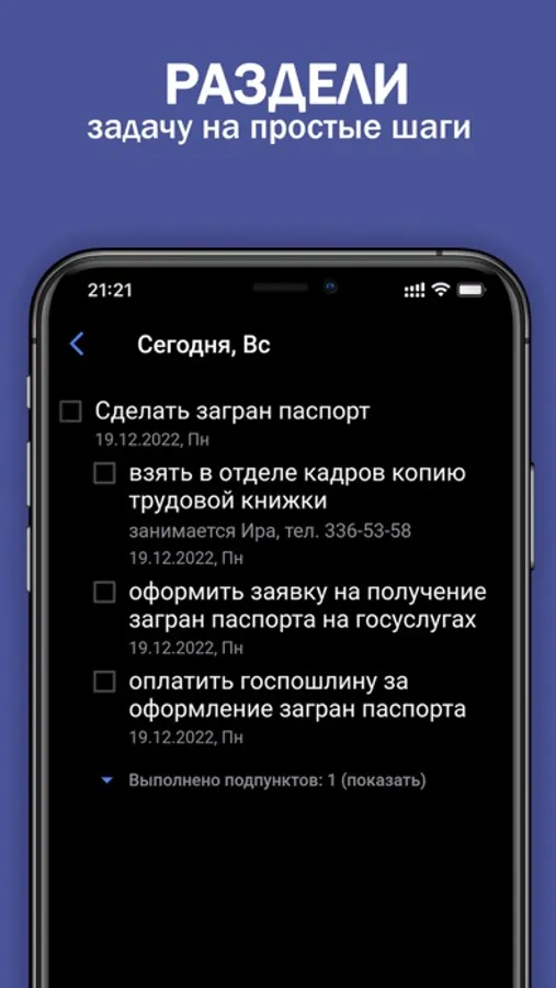 - Разделить сложные, монотонные и длительные задачи на простые шаги.