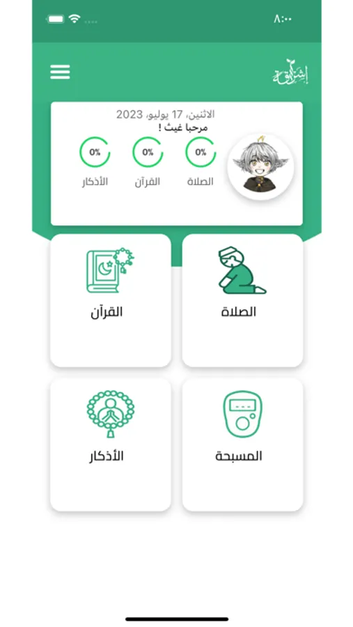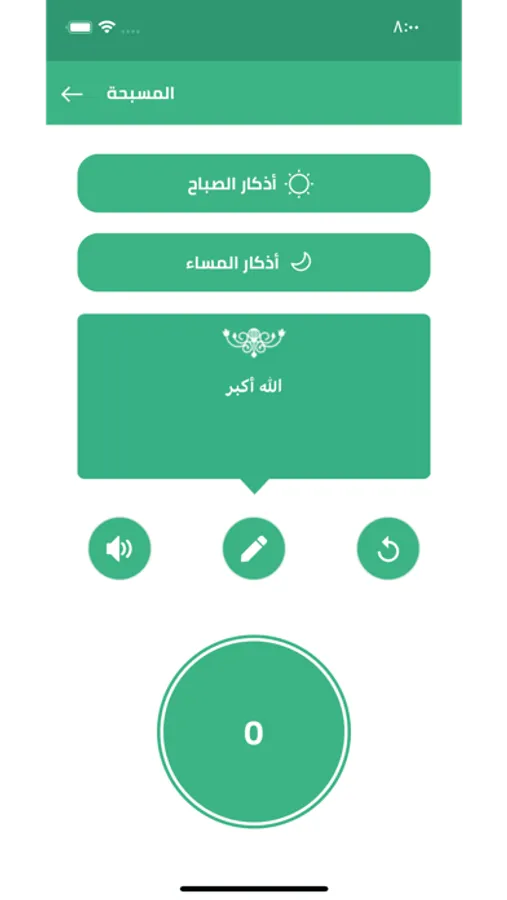 وأخيرا المسبحة الإلكترونية ، وهي عبارة عن عداد ونصوص مكتوبة لأذكار يمكنك الاختيار منها ، تص