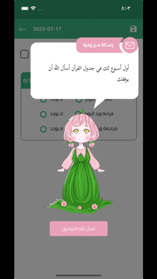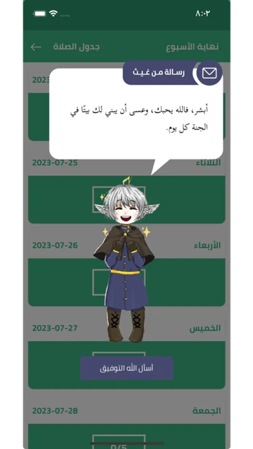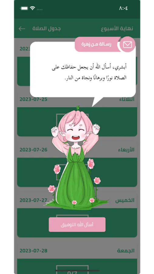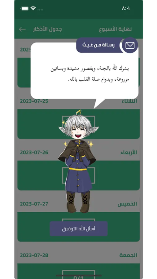 في نهاية كل أسبوع - في كل الأقسام - تظهر لك رسالة تشجيعية