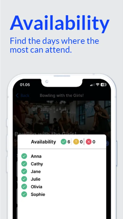* Personalized Availability: Each mate can easily mark their availability with a simple tap - yes, no, or maybe. It's time to make decisions based on everyone's preferences!