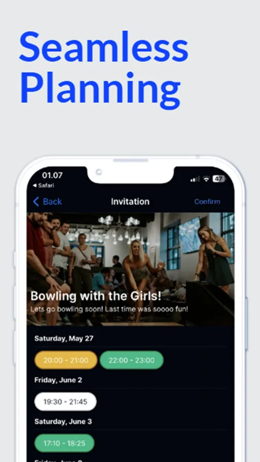 With Plan Mates, scheduling group events has never been easier. Say goodbye to the days of endless back-and-forth messages and confusing availability charts. This app is here to save the day and make planning a breeze!