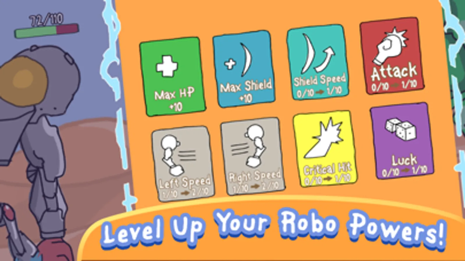 • Level up your robo for maximum power and speed!