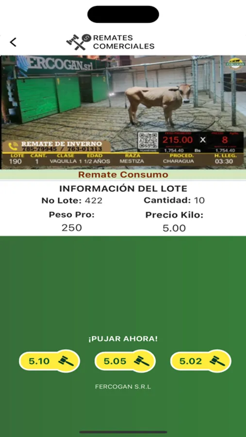 Con la app de Fercogan podrás acceder a los remates comerciales y remates elite. Podrás mirar la fecha de los eventos y hacer pujas en tiempo real por los animales que mas te gusten.