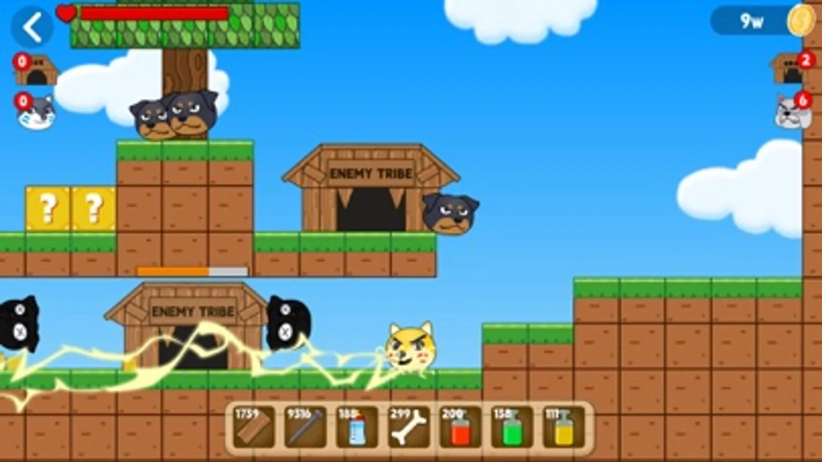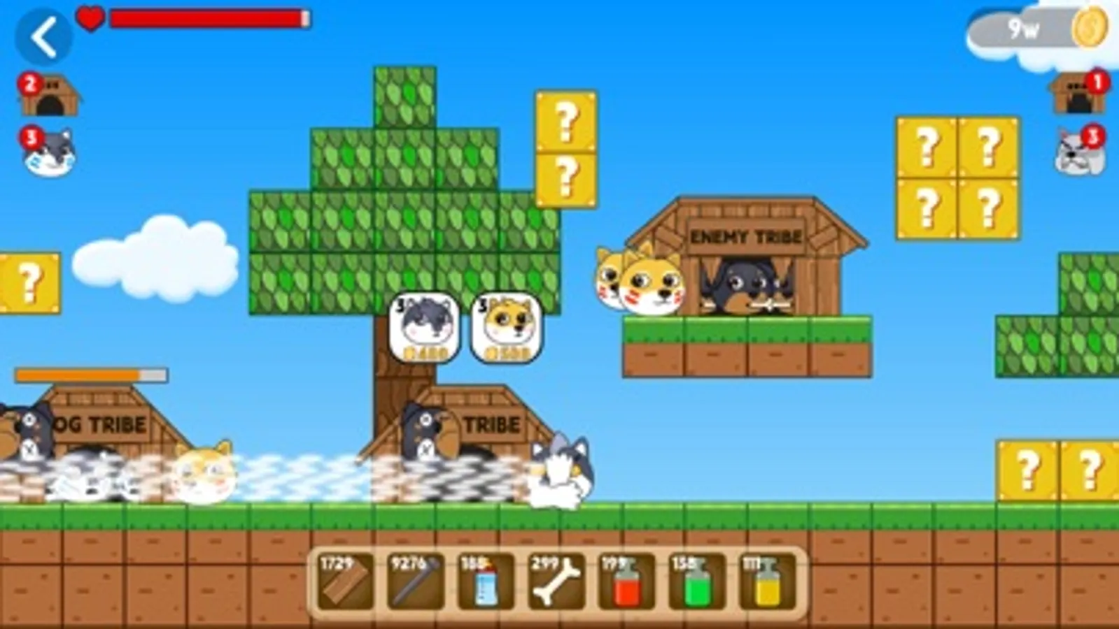 This is an interesting dogs fighting action game. Kung Fu savvy dog tribe and enemy tribe build more doghouses in order to compete for more territory and defeat each other.