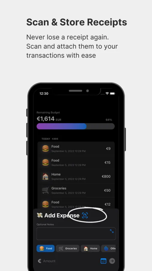 • Receipt Scanner: Digitize receipts with your device's camera. Say goodbye to paper chaos!