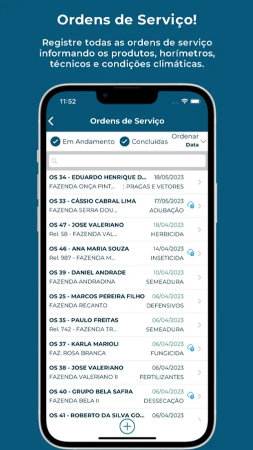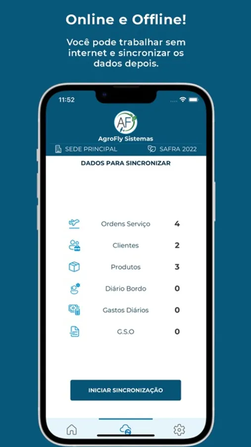 Tenha o controle da sua safra e obtenha as informações operacionais de seus pilotos em tempo real com nosso aplicativo móvel que interage diretamente com o software AF Agrícola, fornecendo recursos de sincronização de ordens de serviço, diário de bordo, reportes operacionais, etc. Após sincronizados, os registros ficam disponíveis tanto on-line quanto off-line no aparelho. O piloto terá na palma das mãos os dados da aplicação como cliente, fazenda, pista, hectares, vazão, produtos, cultura, informes de horímetros da aeronave, diário de bordo, gastos e reportes operacionais, tudo em tempo real, permitindo assim uma melhor organização dos serviços.