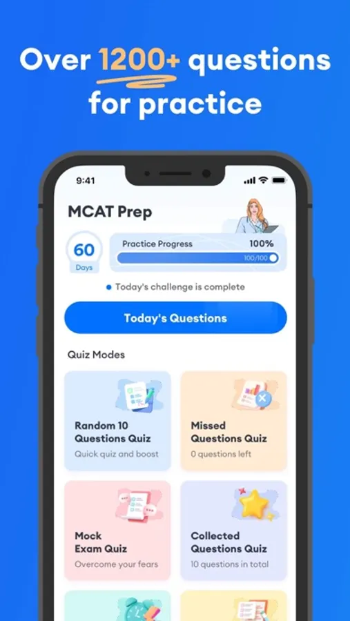 MCAT Test Prep 2023 is an application that has been carefully designed and developed by industry exam experts. It has more than 1,200 high-quality test questions with answer explanations, multiple test modes and a scientific analysis system to help you practice efficiently anytime, anywhere and give you a better chance of passing the MCAT exam on the first try!