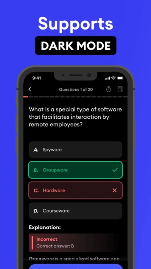 All the features we provide are for your practice or study before the exam only. Your success on these questions or quizzes does NOT necessarily mean that you will pass the certification or that you will perform well on the exam.