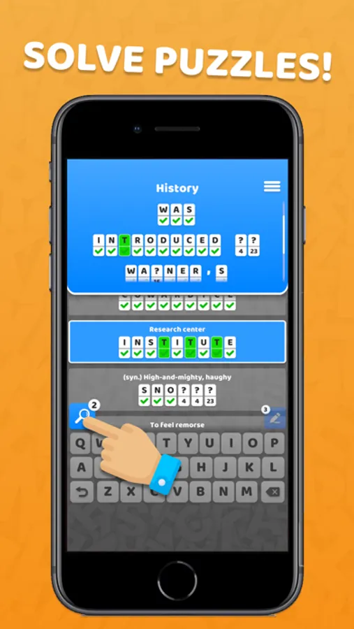 Seamlessly navigate back and forth between the wordlist and the dashes, completing missing letters and connecting words.