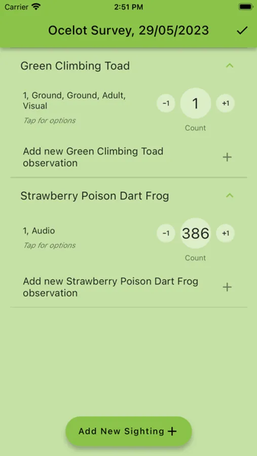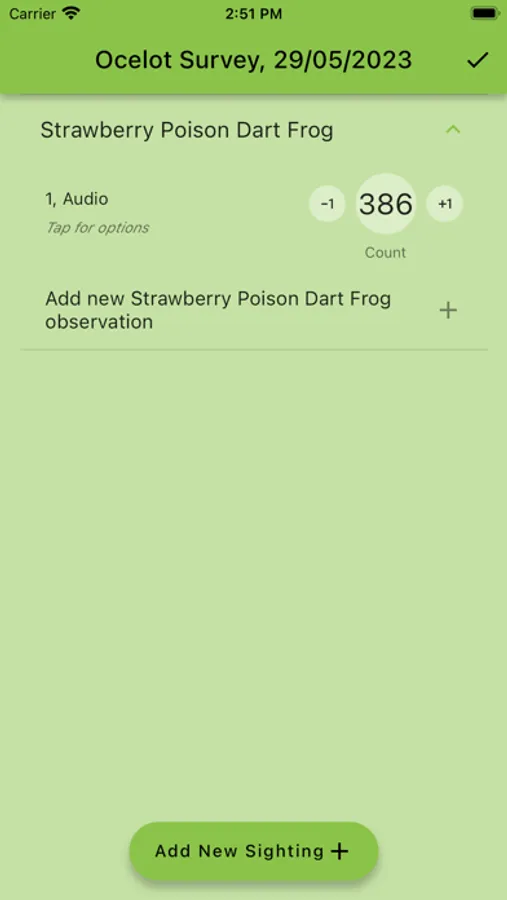 An app to help record species observations across biodiversity surveys, bird point counts, and bird transects in the Kèköldi area.