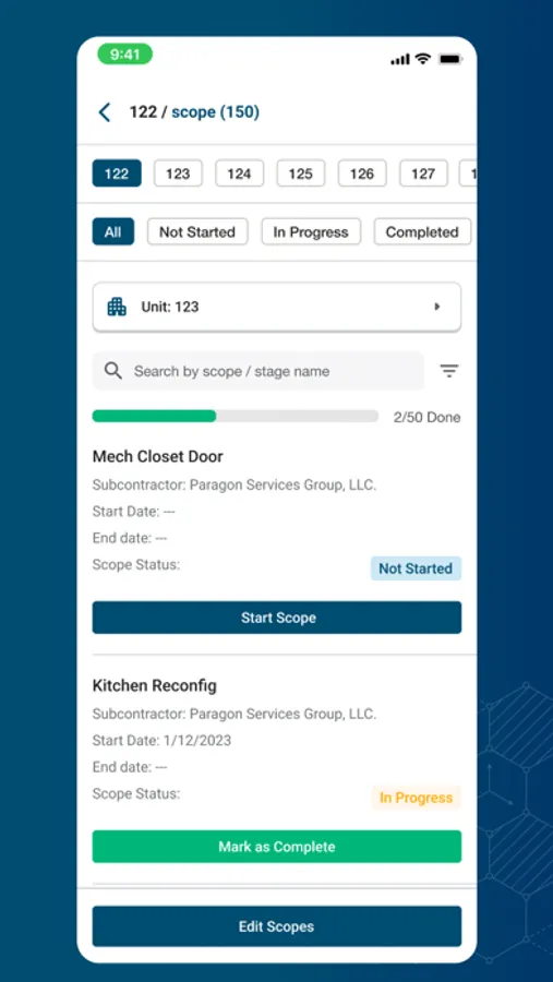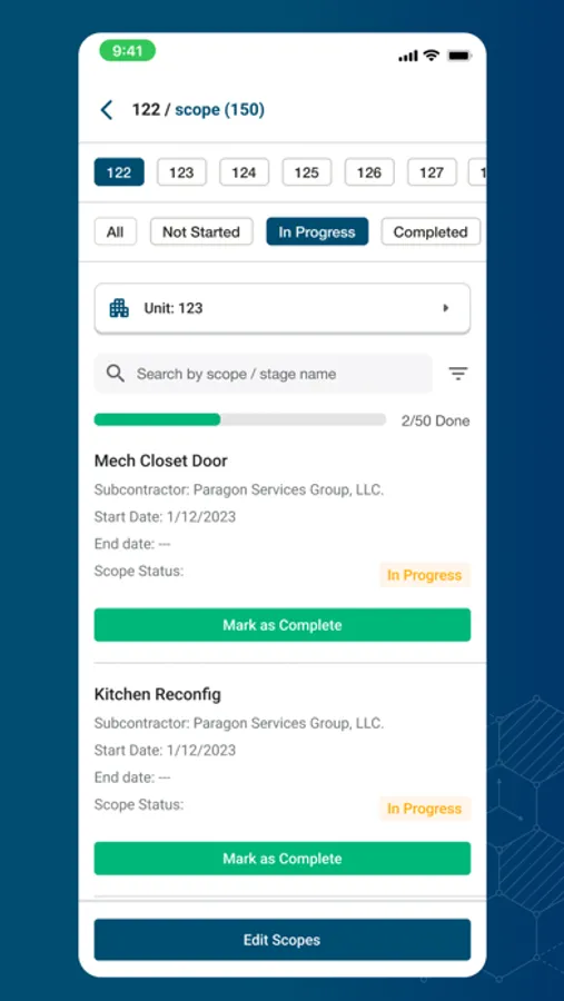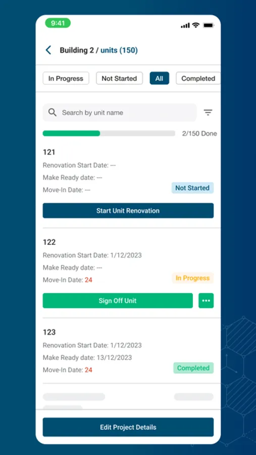 Say goodbye to time-consuming manual processes and embrace the simplicity and precision of Tailorbird Production. With our app, you can seamlessly manage each aspect of your renovation projects, from tracking renovation progress to invoicing and kit ordering.