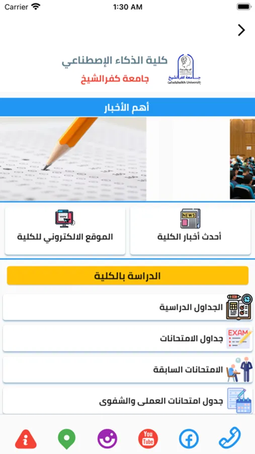 تطبيق يعرض كل ما يخص جامعة كفرالشيخ ، اخبار جامعة كفرالشيخ وأخبار جميع كلياتها ، جداول دراسية جداول امتحانات .... الخ