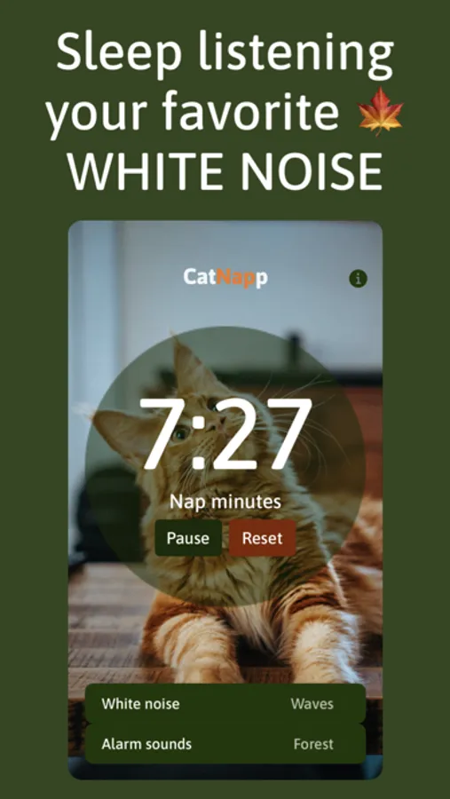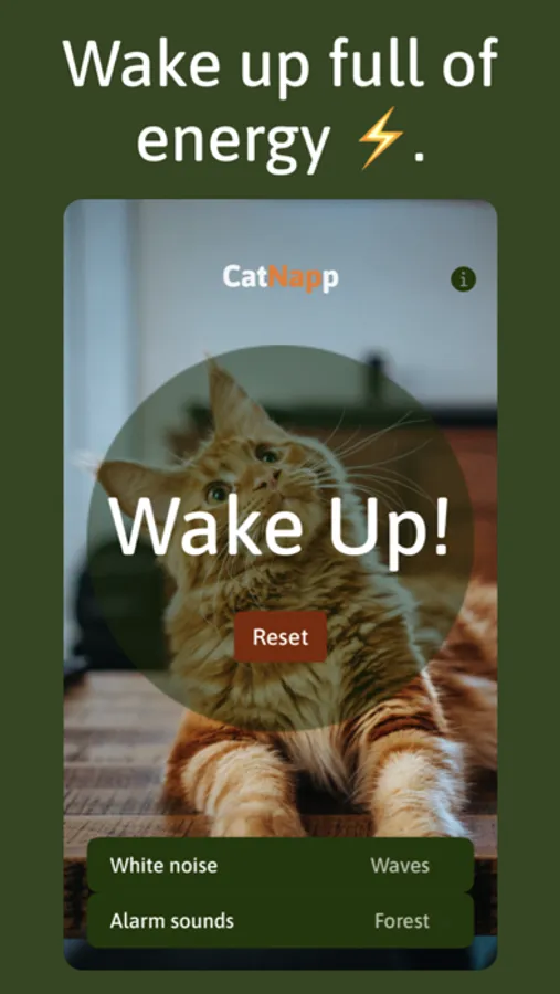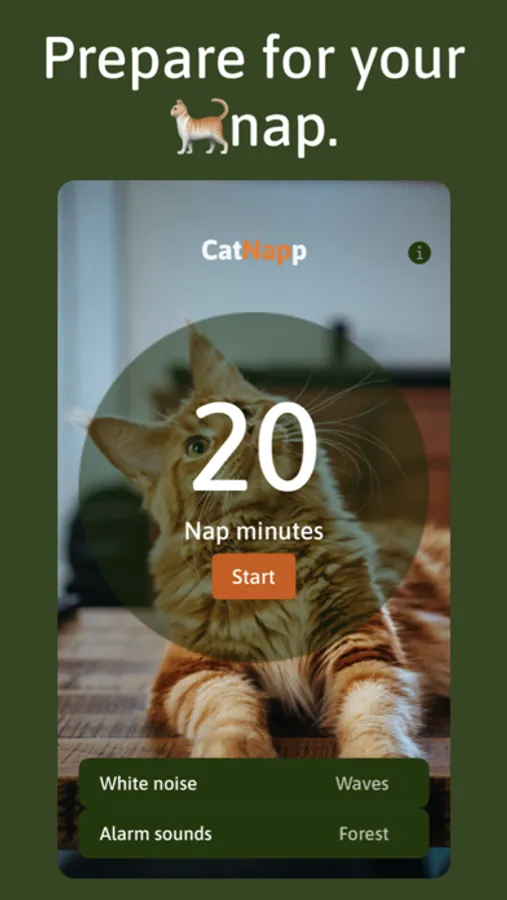 CatNapp helps you take those quick power naps while listening to a gentle white noise and it wakes you up with beautiful sounds, from a forest to babies laughing.