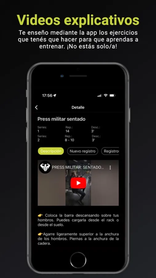 Programa de entrenamiento personalizado: Obtén un plan de entrenamiento a medida, diseñado específicamente para ti. Nuestra aplicación te proporciona videos interactivos que te guiarán en cada ejercicio, asegurando que realices los movimientos de manera correcta y segura.