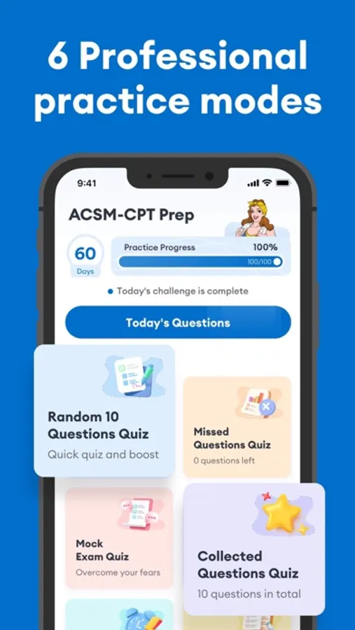 ACSM CPT Fitness Prep is an application that has been carefully designed and developed by industry testing experts. With more than 1,200 high-quality test questions and answer explanations, multiple test modes and a scientific analysis system, it helps you practice efficiently anytime, anywhere, making it more likely that you will pass the ACSM CPT certification exam on your first try!