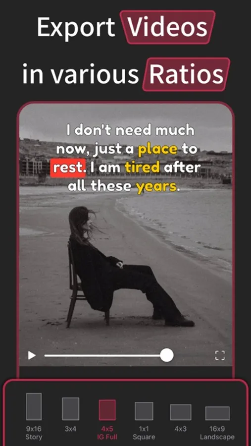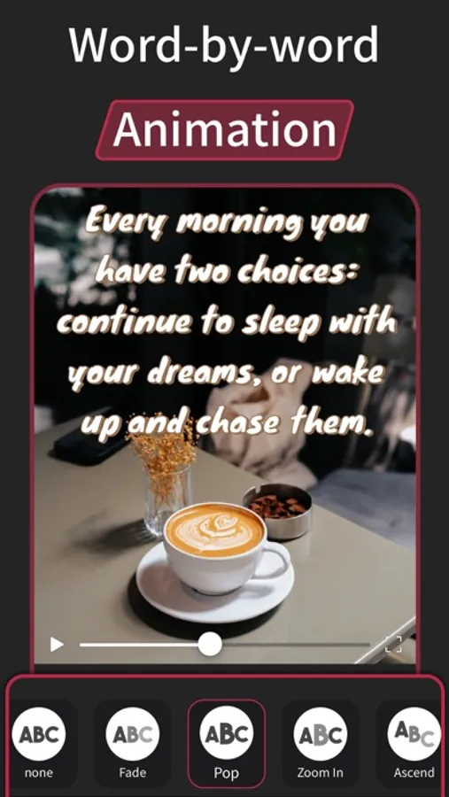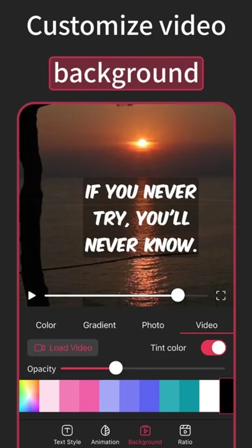 - Custom text-video's background using solid colors, gradient colors or photos from your library