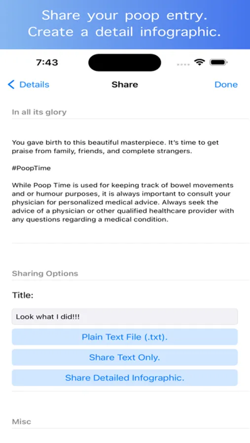 - Get rewarded inside the app for your poop activity. Share your new rewards among friends, on social media, or keep them to yourself.