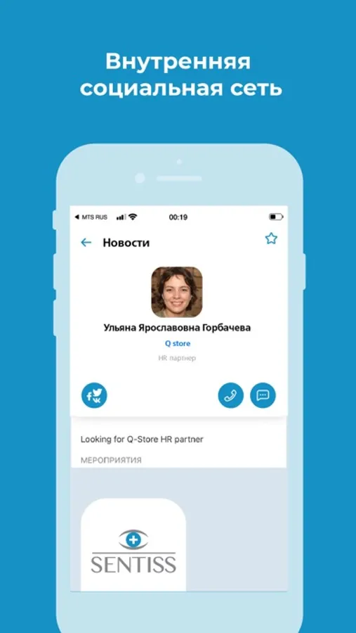 Широкие возможности коммуникации с другими участниками, создание бизнес-сообществ, календарь событий, избранное, тэги и многое другое - для сотрудников и гостей компании Sentiss.