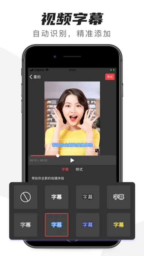 独家算法准确识别字幕,一键添加,大幅节省纠错错字时间。同时提供丰富的字体和样式供你选择。
