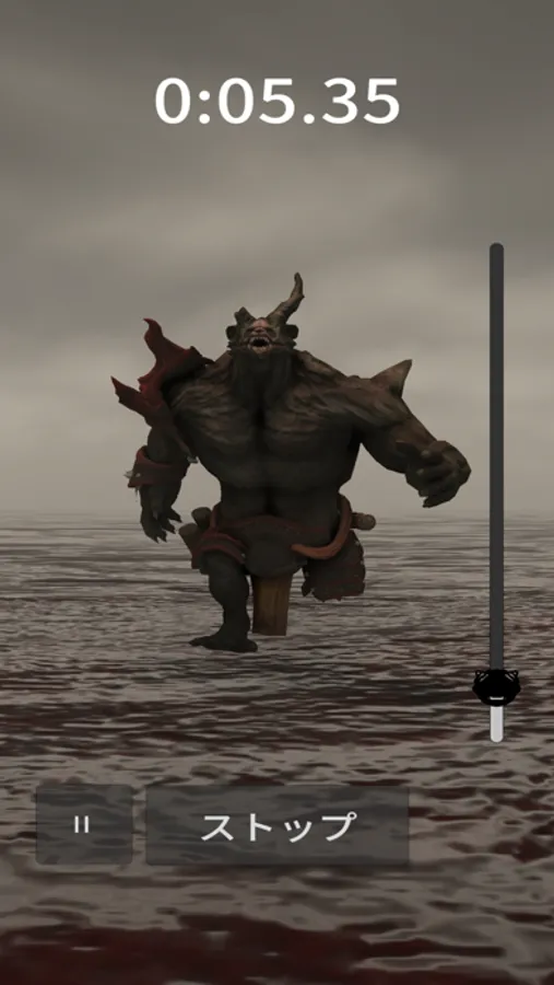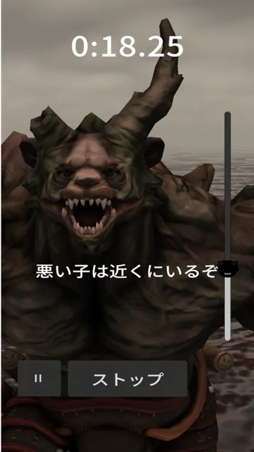 時間内に「ストップ」を押すことで、迫り来るおにを止められます。